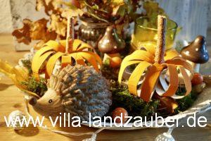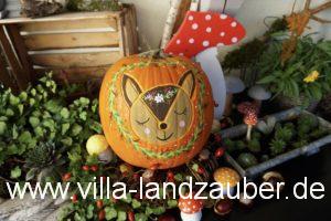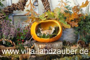 Der Herbst zeigt sich gerade von seiner schönsten Seite. Und ich zeige Euch heute noch einige Herbstdeko, natürlich auch mit Kürbissen. Hier wurde ganz einfach eine kleine Kürbislandschaft gezaubert. Du brauchst nur einen Kürbis. Hier malst Du mit Bleistift ein etwas ovales Fenster auf. Dann schneidest Du mit dem Messer an der Linie entlang und höhlst den Kürbis mit einem Löffel aus. Schon hast Du eine tolle Fläche, um eine
